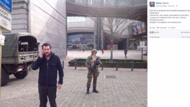 Critiche e fotomontaggi online non sono andati giù a Matteo Salvini, accusato di essere uno "sciacallo" per le foto da Bruxelles pubblicate poco dopo gli attentati di martedì. Il leader della Lega Nord attacca: "In Italia abbiamo la sinistra più imbecille d'Europa: ci sono 32 morti e loro giocano con le foto di Salvini. Mi fanno passare come più pericoloso dei terroristi, sono dei malati mentali".