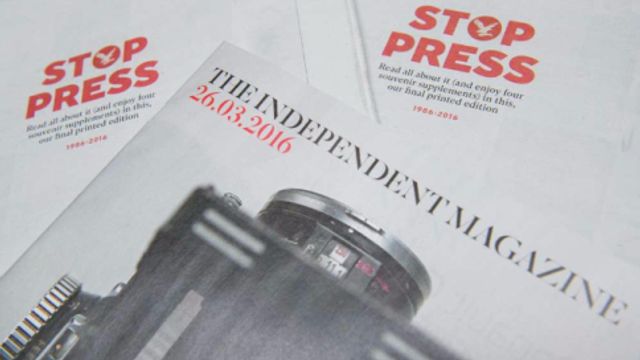 Sabato 26 marzo, l'Independent è uscito per l'ultima volta nelle edicole britanniche. Da domenica 27, il quotidiano più europeista, anticonformista e fuori dal coro fra le testate del Regno Unito, che dal 1986 era un punto di riferimento del mondo liberal, vivrà solo online. L'ultimo numero su carta del domenicale Independent on Sunday era uscito domenica scorsa.