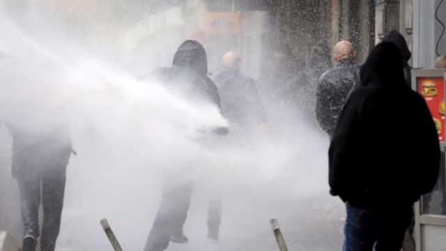 Polizia interviene con gli idranti - Tifosi ubriachi, con il volto coperto, hanno scandito slogan come "Hooligan belgi, siamo a casa nostra" e lanciato pietre, bottiglie e altri oggetti. La polizia, in assetto antisommossa, ha chiuso gli accessi alla piazza ed è intervenuta con lacrimogeni e idranti. I manifestanti erano soprattutto estremisti di destra: quasi tutti erano vestiti di nero, molti con indossano cappucci e passamontagna. Molti di loro venivano da Vilvorde e da Anversa.