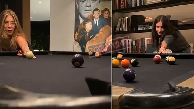Nel video ripostato anche dalla Cox si vede prima Courteney che sfoggia le sue abilità nel maneggiare l'asta sul tavolo da biliardo e poi Jennifer Aniston che colleziona un insuccesso dopo l'altro. Tra una scena e l'altra la Cox non può che osservare divertita e sconfortata la rivale.