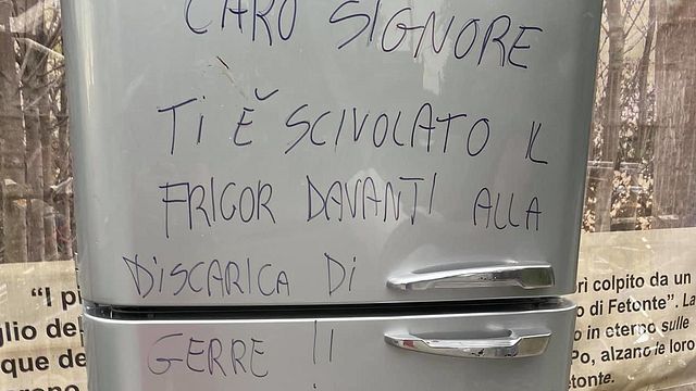 Ha abbandonato il frigorifero rotto davanti alla discarica del Comune di Gerre de' Caprioli, paese in Provincia di Cremona. Grazie alle telecamere di videosorveglianza presenti sul posto, il sindaco Michel Marchi è riuscito a rintracciare il proprietario del veicolo con cui è stato trasportato l’elettrodomestico. Così, il primo cittadino ha deciso di riportargli il frigo a casa con tanto di dedica scritta con un pennarello: "Caro signore, ti è scivolato il frigo davanti alla discarica di Gerre. Per fortuna ti abbiamo visto e te lo riportiamo. Poi ti mando anche la multa".