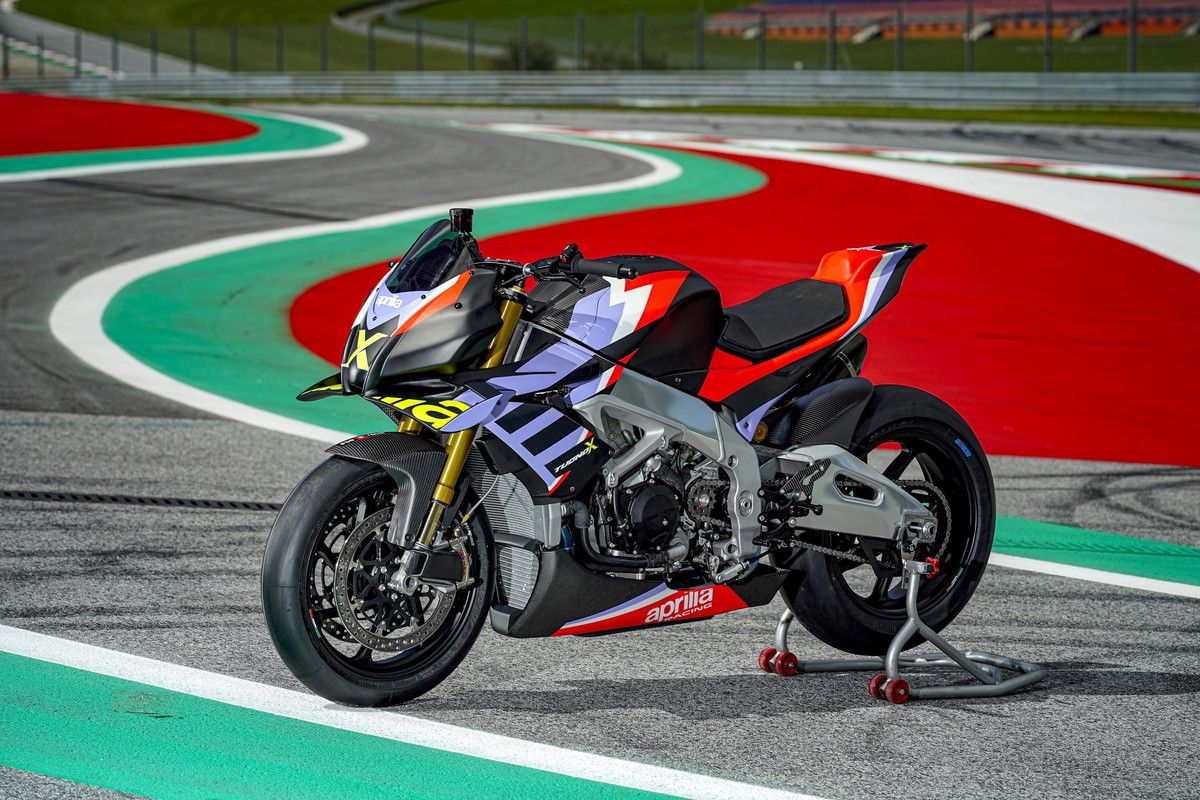 Prodotta in edizione limitata e numerata, la nuova Tuono V4 X è una vera regina della pista, ma guidabile su strada col massimo piacere. Il motore 1100 (lo stesso della RR e della Factory) sale ancora di potenza, dai 217 CV della RSV4 X (ultima special V4 di Aprilia, prodotta in 10 esemplari e tutti assegnati in poche ore) agli attuali 221 CV. Il manubrio alto e le sovrastrutture in carbonio danno una caratterizzazione marcatamente sportiva alla Tuono V4 X, impreziosita dalla grafica dedicata “Bol d’Or” e dai cerchi Marchesini in magnesio forgiato, che calzano pneumatici slick.