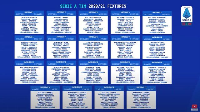 Inter-Juventus e Lazio-Roma alla diciottesima giornata, il derby di Milano alla quarta. Sono i verdetti del sorteggio del calendario di Serie A 2020/21. Il campionato prende il via il 19 settembre con il big match Lazio-Atalanta. Napoli-Juventus è in programma al terzo turno mentre al settimo i bianconeri di Pirlo affronteranno la Lazio. Il derby di Genova si giocherà alla sesta giornata, quello di Torino alla decima.