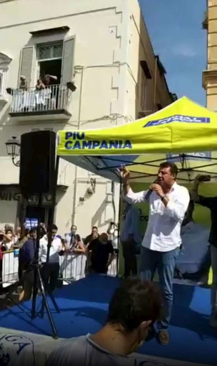 Salvini ha comunque dedicato una parte del suo breve e contestato intervento a una donna che continuava a urlare in un'area posta a ridosso di una fontana pubblica. "Signora, vuole sapere perché abbiamo già vinto? - le ha chiesto - Perché se ci fossero qui Renzi, De Luca e De Magistris, non stareste ad urlare e a fare casino. Sareste a casa, sareste al negozio, sareste a studiare, sempre che la Azzolina permetta la riapertura delle scuole. Noi faremo di tutto per mandare a casa la Azzolina. E se ci date una mano mandiamo a casa anche quel chiacchierone di De Luca".