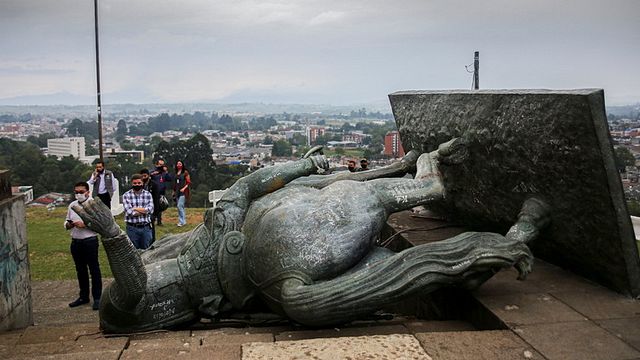 Manifestanti indigeni in Colombia hanno abbattuto una statua del conquistatore spagnolo Sebastián de Belalcázar nella città sud-occidentale di Popayán. Membri della comunità Misak hanno usato delle corde per buttare giù il monumento equestre di de Belalcázar, che fondà la città nel 1537. Per i leader indigeni la statua rappresentava cinque secoli di genocidio e schiavitù.