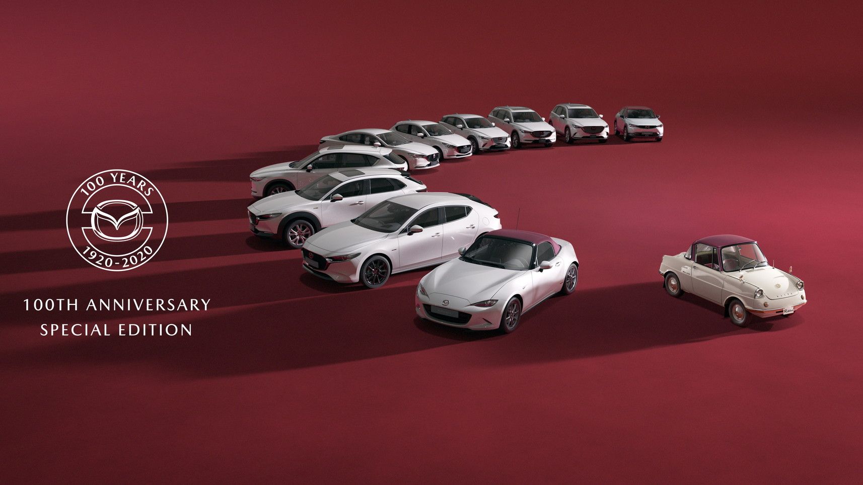 Siamo negli anni 60, le Case giapponesi si affacciavano sul mercato mondiale dellʼautomobile e Mazda trovò un partner nella tedesca NSU. Con questa (poi confluita in Audi), sviluppò il motore rotativo Wankel, che ancora negli anni 2000 abbiamo visto su modelli come la RX-8. Proprio alla R360 Coupé sʼispirano i designer della serie speciale “100th Anniversary”, tanto che tutti i modelli si distinguono per la carrozzeria bianca micalizzata e gli interni in pelle rossi. Unica eccezione per la MX-30, il Suv 100% elettrico pronto al debutto su strada, che avrà una carrozzeria bicolore con tetto rosso e corpo Ceramic Metallic.