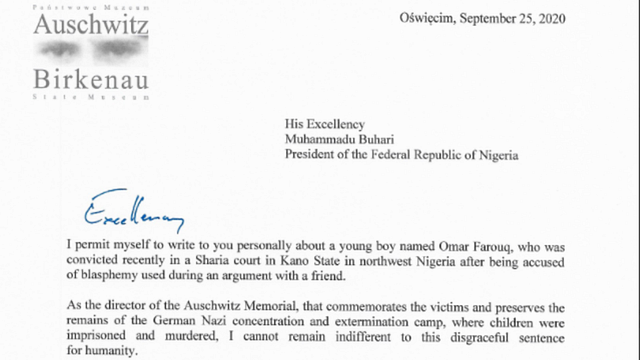 La lettera che fa sperare - La vicenda di Farouq ha scosso profondamente il direttore del memoriale del campo di concentramento di Auschwitz, Piotr Cywinski, che in termini netti ha definito la sentenza "scandalosa per l'umanità". Lo storico di origini polacche ha scritto direttamente al presidente della Nigeria Muhammadu Buhari per chiedere la grazia. Oppure, "se le parole di questo ragazzo richiedono necessariamente 120 mesi di prigione, suggerisco di far scontare la pena a 120 volontari raccolti da me - incluso io stesso - ognuno dei quali passerà un mese in un carcere nigeriano".