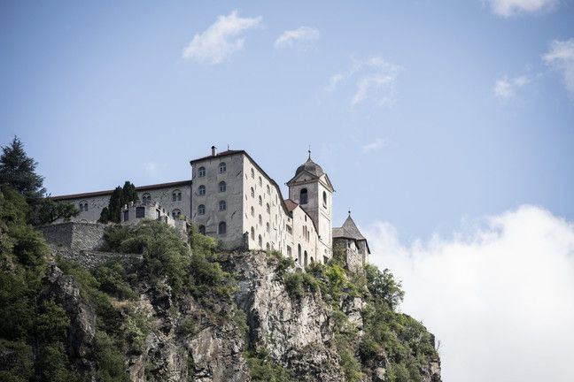 Törggelen, un’esperienza imperdibile - Da Velturno ci si inoltra fra castagneti sull’altopiano ben soleggiato, con ampli scorci panoramici sulla Valle Isarco e le vette che le fanno da corona. Il sentiero tocca vari masi, dove vale la pena di fermarsi. Pura sinergia fra natura e agricoltura biodinamica è, ad esempio, il Rodoarhof, con stalla, frutteto biologico, cantina e piccola distilleria, dove Norbert Blasbichler crea un profumato distillato di castagne, vende i suoi prodotti e accoglie i turisti con merende contadine, degustazioni, visite guidate. Meta, il Monastero di Sabiona, dal passato millenario e dai ricchi tesori artistici, arroccato su un’alta rupe sopra Chiusa. Da qui, vale veramente la pena di scendere fino a Chiusa, per visitare il suo incantevole centro storico medievale. Ultime tappe Villandro e Barbiano, con il suo caratteristico campanile pendente. Imperdibile, in questo periodo, è provare l’esperienza del Törggelen in un Buschenschänke, le osterie contadine fra i vigneti che espongono sulla porta un mazzo di frasche con un fiocco rosso, a segnalare che offrono vino di produzione propria, castagne e rustiche pietanze. Una delle più conosciute è Oberpartegger a Villandro, genuinità e tradizione allo stato puro, dove Hannes Kainzwaldner e la sua famiglia accolgono gli ospiti sotto le pergole o nelle antiche stube in legno di cirmolo con eccellenti vini, pane fatto in casa, speck, carne di manzo affumicata, schlutzer (mezzelune ripiene di spinaci o aglio ursino), canederli allo speck, gnocchi, zuppe, krapfen, buchtein (dolce a pasta lievitata) e altri piatti tipici realizzati con prodotti del maso.