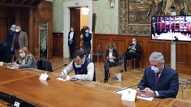 Matteo Salvini ha incontrato in un luogo riservato il leader di Forza Italia, Antonio Tajani, e la presidente di Fdi, Giorgia Meloni. Un caffè prima dell'udienza al tribunale di Catania, dove il leader della Lega è indagato per sequestro di persona per il caso Gregoretti. Precedentemente un incontro fra i tre era stato previsto in piazza Duomo, poi rinviato per motivi di sicurezza.