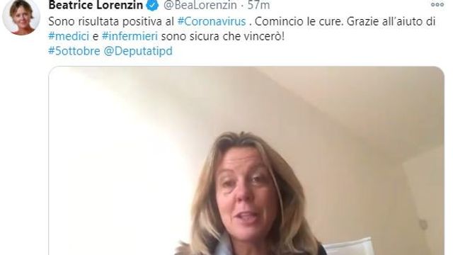 "Purtroppo sono risultata positiva al coronavirus. In questo momento ho un po' di febbre e mal di gola, ma sono sotto monitoraggio e la situazione è tranquilla. Comincio le cure. Grazie all'aiuto di medici e infermieri sono sicura che vincerò!". Così su Twitter Beatrice Lorenzin, deputata Pd ed ex ministro della Salute.