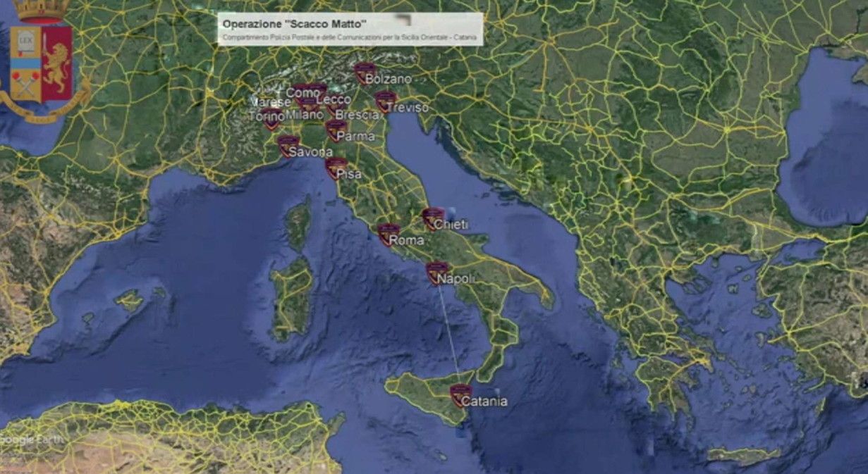 Sequestri e perquisizioni in tutta Italia Sono stati effettuati sequestri e perquisizioni a Bolzano, Brescia, Catania, Chieti, Como, Lecco, Milano, Napoli, Parma, Pisa, Roma, Savona, Sassari, Torino, Treviso e Varese oltre che in altre città straniere.