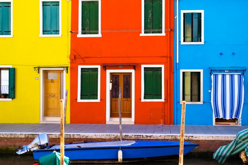 BURANO, VENEZIA – Cominciamo da un luogo vicino: l’isola di Burano, nella laguna di Venezia è un vero caleidoscopio di colori. La tradizione vuole che i pescatori abbiano dipinto le loro case in modo da poterle riconoscere a colpo d’occhio nella nebbia.