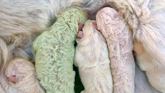 Sorpresa in un'azienda agricola di Palu ‘e Carru (Oschiri), in Sardegna. I proprietari dell'attività, Giannangelo Liperi e Cristian Mallocci, si sono ritrovati tra le braccia un cane con il pelo verde. Tra i quattro cuccioli di Labrador nati nell'azienda ce n'era, infatti, uno diverso dagli altri, che ha lasciato tutti senza parole. "Sembrava un cane alieno", ha commentato Mallocci.