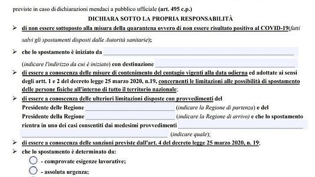 La Regione non ha messo a disposizione un documento ufficiale ma è sufficiente un modello generico