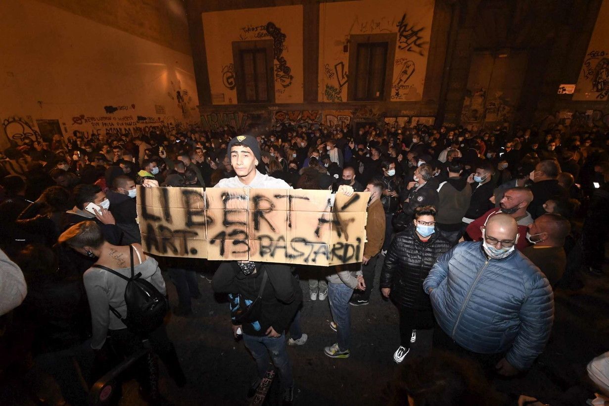 Centinaia di persone sono scese in strada a Napoli per manifestare davanti alla sede della Regione Campania contro il coprifuoco e contro l'ipotesi di lockdown. Ci sono stati scontri con la polizia in tenuta antisommossa, lancio di lacrimogeni da entrambe le parti, bombe carta e petardi. Diversi gli striscioni contro De Luca ("Tu ci chiudi, tu ci paghi" e "La salute è la prima cosa ma senza soldi non si cantano messe",) e il governo.