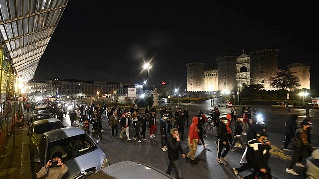 Scene di guerriglia urbana a Napoli, davanti al palazzo della Regione Campania. I manifestanti scesi in piazza contro le restrizioni anti Covid, tutti con il volto coperto dalle mascherine, sono riusciti a superare lo sbarramento delle forze dell'ordine e in centinaia stanno lanciando petardi e accendendo fumogeni davanti al palazzo mentre le forze dell'ordine rispondono con un fitto lancio di lacrimogeni.