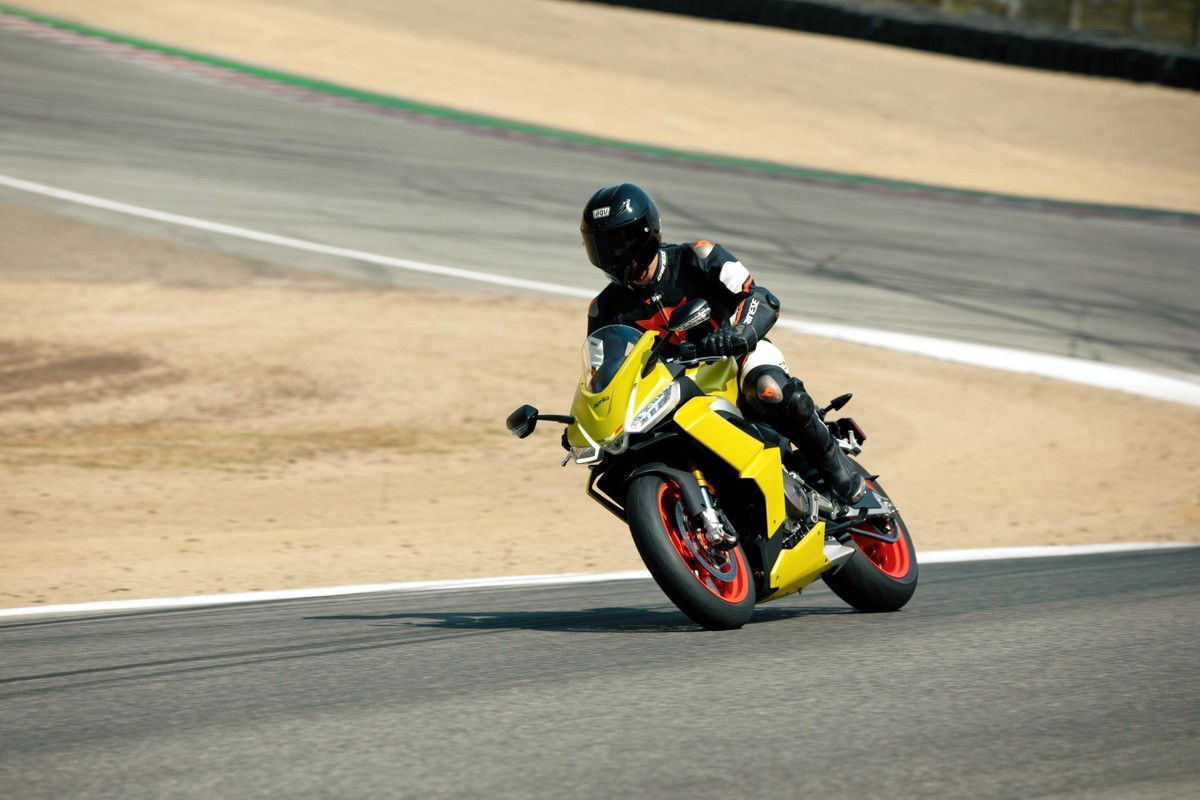 A testarla sul leggendario “cavatappi” di Laguna Seca è stato Rennie Scaysbrook, campione australiano molto popolare negli States per aver vinto la Pikes Peak, celebre cronoscalata, in sella allʼAprilia Tuono V4. La piccola sportiva di Noale è una moto esuberante, sicuramente giovanile, tanto bella nel suo design snello quanto dinamica in pista e su strada. La nota più significativa della Aprilia RS 660 è proprio lʼeccellenza nel rapporto peso/potenza, pari a 169 chili per 100 cavalli.