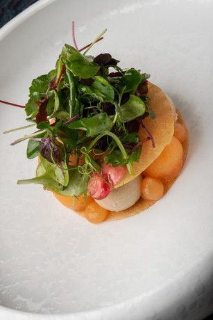 Fin dall’entrée chef Spagnoli ci sorprende, presentandoci un Salmone glassato al lampone, tartare di capasanta e Oyster sauce. Un omaggio delicato e non ingombrante, che lascia il palato non stressato e pronto per la portata successiva, l’inizio del “viaggio” che ci propone la cucina.