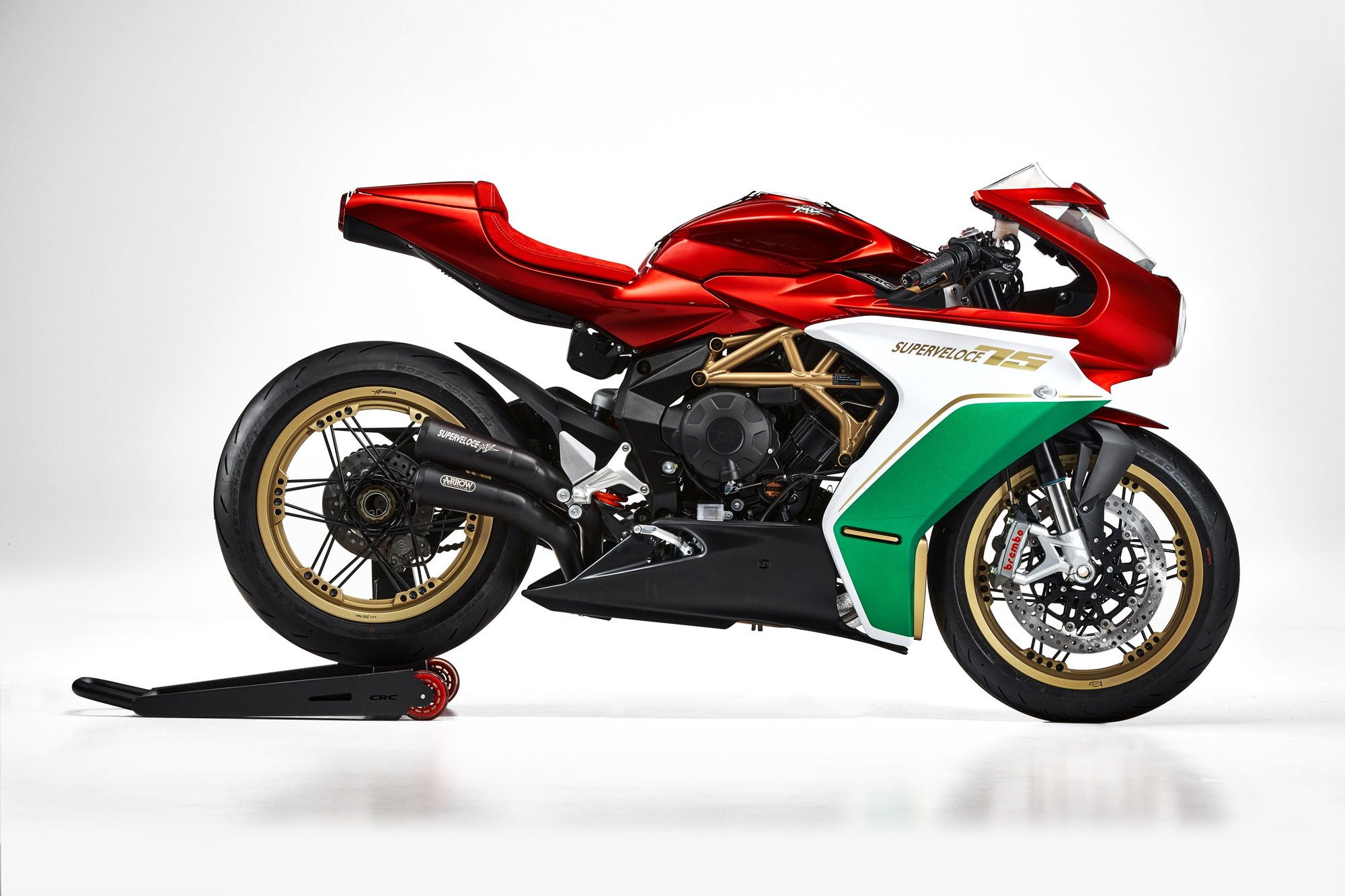 La Superveloce 75 Anniversario monta lo stesso motore 3 cilindri in linea della Superveloce 800, derivato dalla F3 800. Forte di una potenza di 147 CV a 13.000 giri, permette alla moto di raggiungere la velocità di 240 km/h. Ma il plus è la speciale livrea tricolore, impreziosita da dettagli come i cerchi “Inmotion” nero e oro e la selleria in Alcantara rosso. Per questa special edition MV Agusta ha creato un kit specifico, accompagnato da un certificato di autenticità, che prevede lo scarico Arrow a tre vie aperto (uso pista), la centralina con mappa dedicata, la targhetta numerata in alluminio su piastra di sterzo e il telo coprimoto dedicato.