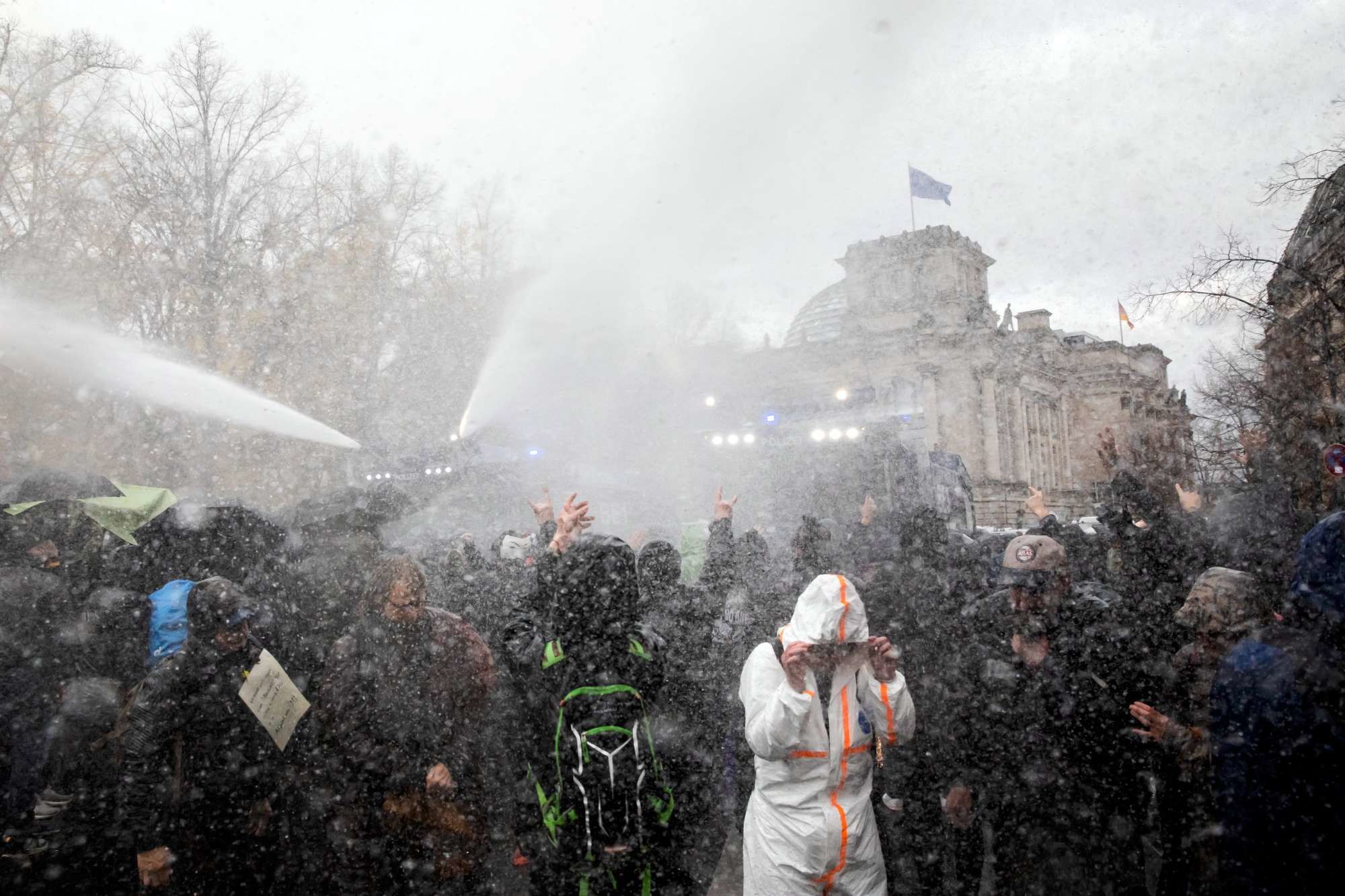 Manifestazioni a Berlino - A Berlino, nel quartiere di Mitte e nella zona della Porta di Brandeburgo, si sono raccolte fra 5mila e 10mila persone per protestare contro le misure adottate dal governo per fermare il contagio da coronavirus. Molti manifestanti non indossavano la mascherina e non rispettavano le distanze: la polizia è quindi ricorsa all'uso degli idranti per disperderli. Mentre i getti d'acqua erano diretti sui dimostranti, agenti in assetto antisommossa hanno arrestato oltre 100 manifestanti. Tra questi, alcuni avevano sparato fuochi d'artificio e bengala.