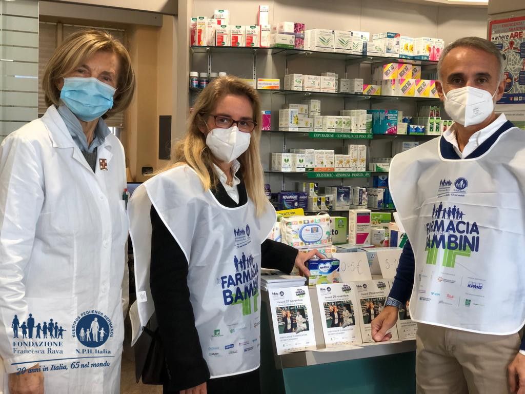 Una grande squadra al servizio dei bambini "In Farmacia per i bambini" si svolge in 2000 farmacie su tutto il territorio italiano. Ha come partner istituzionali Federfarma e Cosmofarma, il patrocinio di Farmindustria e FOFI. Al fianco della Fondazione, sarà presente il Network KPMG con cui l'iniziativa è nata nel 2013 e le Aziende amiche BNP Paribas, Chiesi, Mellin, Nutricia, Mylan, EcoEridania, Lierac, Silc-Trudi Babycare, Vim, BD Rowa. Sostengono la campagna anche Fondazione Cariparma e Fondazione Carisbo. Patrocinio del Comune di Verona. Il Gruppo Armando Testa si è unito pro bono a questa grande squadra firmando la campagna di comunicazione 2020 declinata su TV, stampa, affissione, radio e social con un team d’eccezione di cui fanno parte la casa di produzione Little Bull Studios, il regista Federico Brugia, il fotografo Mauro Turatti. Lo spot di In Farmacia per i Bambini è un film sognante in grado di lanciare un messaggio forte quanto diretto, che vede come protagonista un aeroplanino realizzato proprio con il bugiardino di un farmaco, simbolo della solidarietà concreta di una donazione, al tempo stesso della spensieratezza dei più piccoli.