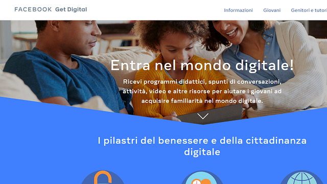 Aiutare genitori, insegnanti e giovani a sviluppare le competenze necessarie per diventare cittadini digitali consapevoli e responsabili: è l'obiettivo del programma GetDitigal, lanciato da Facebook anche in Italia. L'iniziativa internazionale è nata con lo scopo di offrire approfondimenti, suggerimenti e risorse complete alle diverse tipologie di utenti del Web.