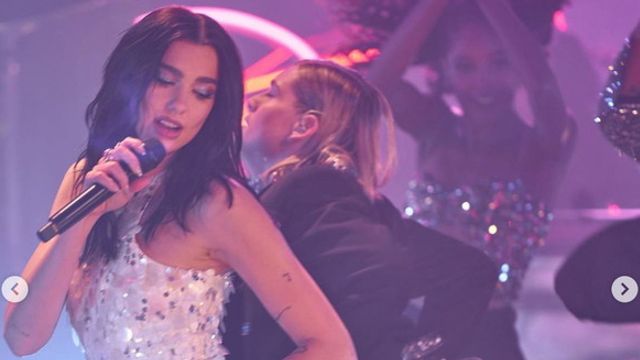 Il tempo per la popstar di cambiarsi d'abito. Quando si torna in diretta nel salotto indossa pantaloni neri e un top per "One Day", stesso look per Angele che duetta con lei in "Fever" Gli interventi degli ospiti si intensificano: si passa da una doppia esibizione adrenalinica con Kylie Minogue, a un momento di emozione pura con Elton John che regala una versione piano e voce di "Rocket Man". Stupisce che l'esibizione non abbia alcun tipo di intervento da parte di Dua Lipa che rientra invece fasciata in una tutina he sarebbe stata perfetta per la Carrà degli anni 80 per il finalissimo: prima "Hallucinate"e poi una lunga versione di "Don't Start Now", dove torna a comparire anche la band di supporto, a lungo sacrificata dal format del film-concerto. Coriandoli, una carrellata attraverso le diverse scene, e baci e abbracci finali.