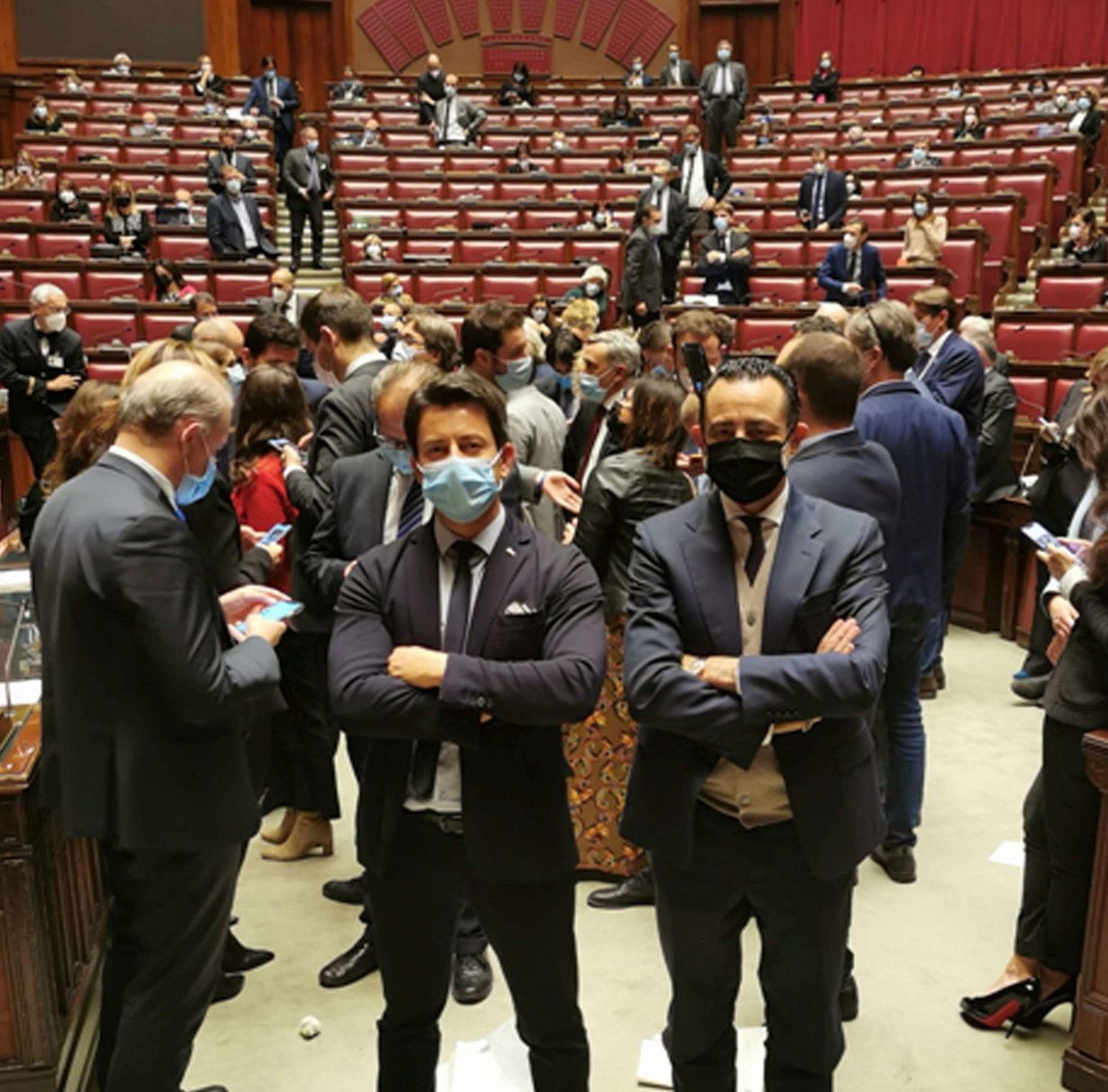 La protesta del centrodestra - La Camera stava votando gli ordini del giorno al decreto sicurezza e, poco dopo l'inizio della conferenza stampa di Conte, sono iniziate le proteste dei deputati del centrodestra al grido di "libertà, libertà" per poi precipitarsi al centro dell'emiciclo, compresi quelli i cui scranni in questo periodo per il Covid sono stati posti in Transatlantico. La seduta è stata dunque sospesa.
