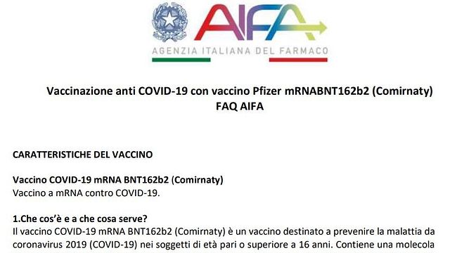 La lista di domande non può escludere le preoccupazioni per le reazioni avverse, che saranno strettamente monitorate anche nei prossimi mesi: quelle verificatisi più frequentemente (più di una persona su dieci) sono brevi e di entità lieve, come stanchezza e mal di testa. Anche chi ha fatto l'antinfluenzale da poco tempo "può vaccinarsi contro il Covid, ma il distanziamento di un paio di settimane può essere una misura precauzionale". Così come potrà vaccinarsi, ma non nella prima fase della campagna, chi ha già avuto una diagnosi da Sars-Cov-2, perché il vaccino "potenzia la sua memoria immunitaria". Per le persone con una storia di grave allergia viene consigliato di consultarsi col proprio medico prima di vaccinarsi. Il vaccino Pfizer-BionTech è per tutta la popolazione over 16 anni perché, chiarisce, l'Aifa, per i bambini sotto i 16 si attende l'esito di ulteriori studi in corso.