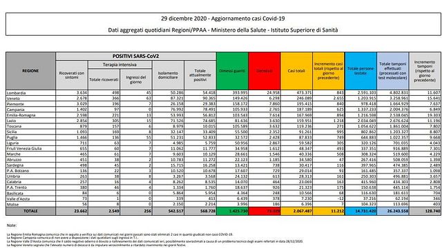 Con 2.655 è il Veneto la Regione con il maggiore numero di nuovi casi. Dietro il Lazio con 1.218 casi. In tutte le altre Regioni si sono registrati meno di mille nuovi casi. Ultimo il Molise con 7 casi.
