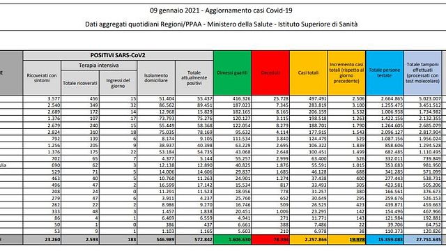 A oggi gli attualmente positivi in Italia sono 572.842. Di questi, 546.989 si trovano in isolamento domiciliare mentre 23.260 sono ricoverati con sintomi. Sono, invece, 2.593 i pazienti totali ricoverati in terapia intensiva. Hanno sfondato quota 500mila le vaccinazioni sul territorio nazionale.