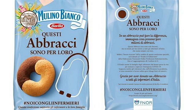 Parliamo di milioni di Abbracci che saranno a scaffale da gennaio in confezioni da 350 e 700 grammi, in una confezione speciale riconoscibile e distintiva: il tradizionale giallo diventa celeste, sul fronte della confezione compare uno stetoscopio e il nome del prodotto diventa un messaggio di sensibilizzazione e vicinanza ("questi Abbracci sono per loro”), con in evidenza l'hashtag della campagna FNOPI #NoiConGliInfermieri.