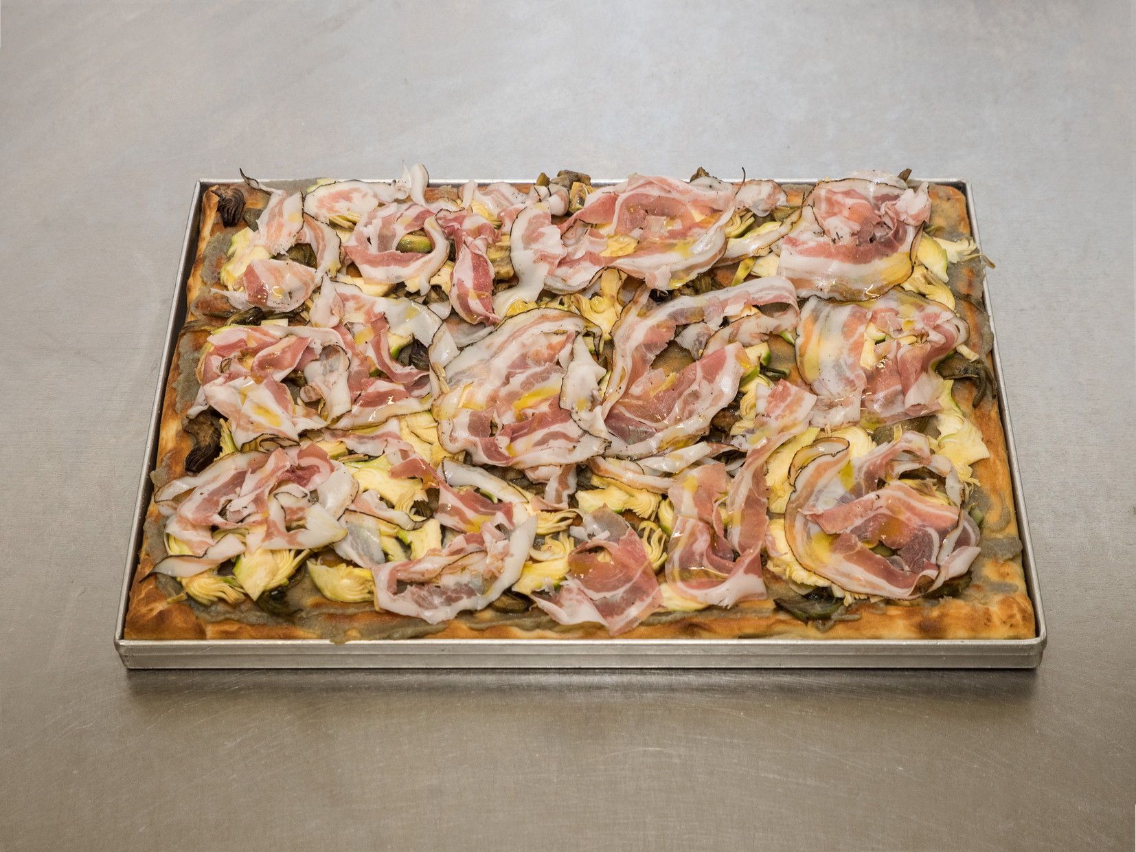 PIZZA AI CARCIOFI CON PANCETTA PEPATA