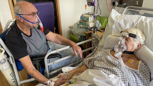 Nell'immagine, Gerry, seduto in carrozzina davanti al capezzale della moglie, la guarda tenendole la mano fra i tubi delle due flebo che s'intrecciano. Entrambi sono attaccati a una maschera d'ossigeno, ma il particolare che colpisce è quello della dita delle due mani che appaiono come intrecciate.