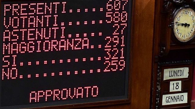 321 voti a favore. Conte incassa una fiducia piena alla Camera, con sei voti oltre la maggioranza assoluta pari a 315, nella prima prova per la sopravvivenza del governo. Hanno votato sì cinque deputati ex M5S, il dissidente sempre 5S Andrea Colletti e l'azzurra Renata Polverini che, con il suo sì, ha annunciato l'addio a Forza Italia. Il centrodestra commenta: "I nostri deputati hanno mantenuto un atteggiamento compatto a parte una sola, prevedibile, fuoriuscita dalla coalizione. Il Senato confermerà il fatto che il governo di Giuseppe Conte è un governo di minoranza" 27 gli astenuti, 259 i voti contrari. Ora la palla passa al Senato, dove i numeri sono strettissimi.