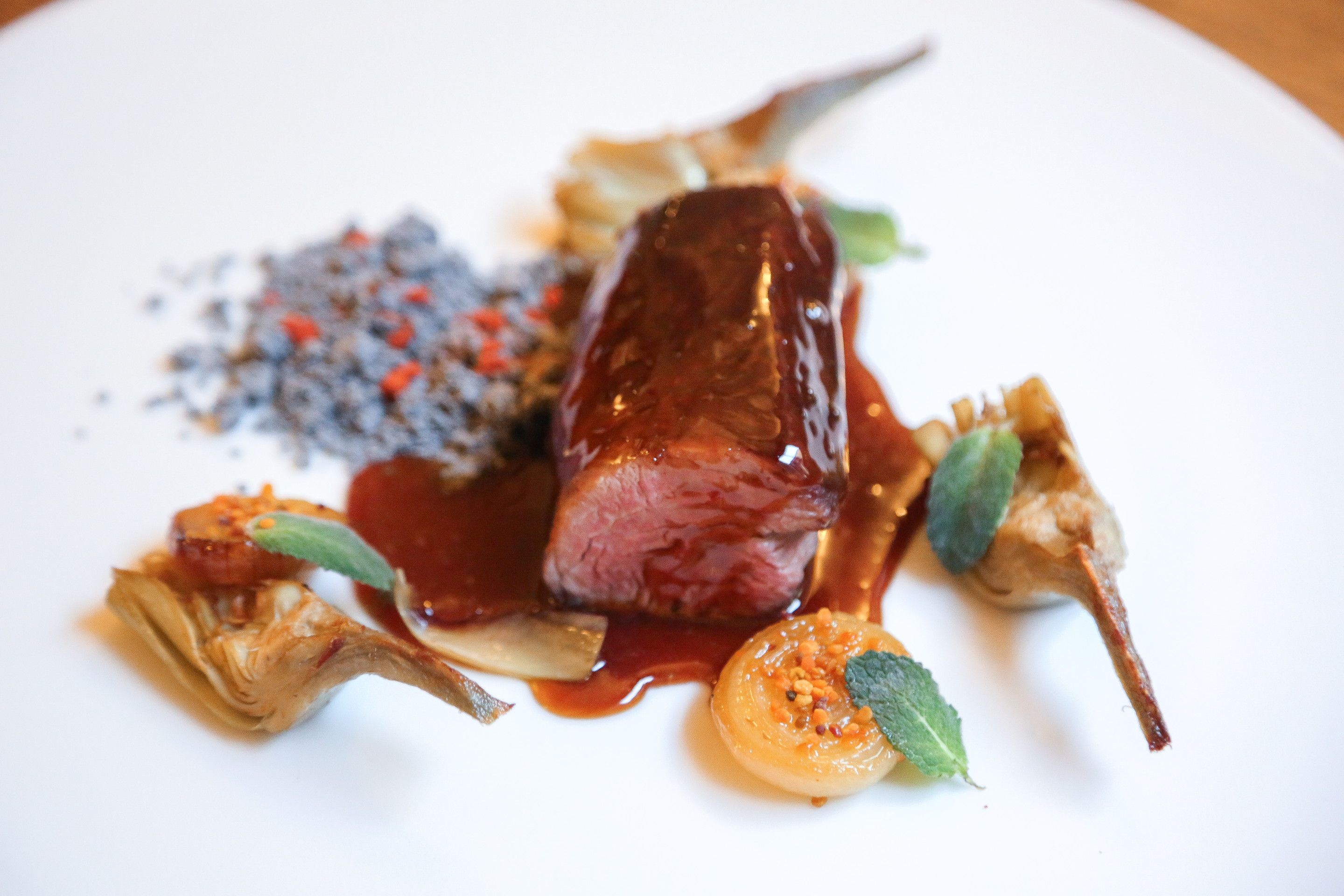 Tra i suoi piatti da ricordare, ci sono l’Agnello alla brace, carciofi, cipolle borettane, burro al polline, la Ricciola cruda, culatello, crema di arachidi e zenzero, la Guancia di vitello brasata all’Alchimè, purè di patate montato e spinaci novelli o il Rombo arrosto, funghi, foie gras e limone salato.
