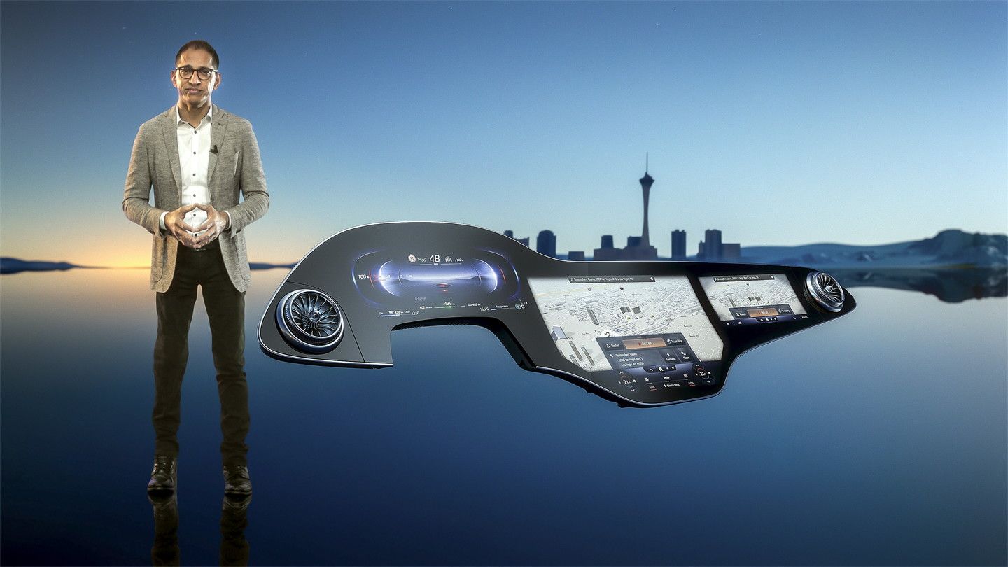Lʼhyperscreen è uno schermo ampio 56 pollici, vale a dire 141 centimetri, e il display con tecnologia Oled è curvo per risultare meglio leggibile. Non solo a chi guida, ma anche al passeggero al suo fianco, che può disporre di una propria area operativa separata da quella che serve alla guida. Le dimensioni lo consentono e lʼhyperscreen opera così come un multischermo. “Il sistema MBUX Hyperscreen è sia il cervello che il sistema nervoso dellʼauto”, spiegano in Mercedes, ed è così in grado di personalizzare i consigli con funzioni tipo promemoria di compleanno e lʼelenco delle cose da fare. Da qui allʼauto che guiderà da sola, il passo sembra ormai davvero piccino piccino…