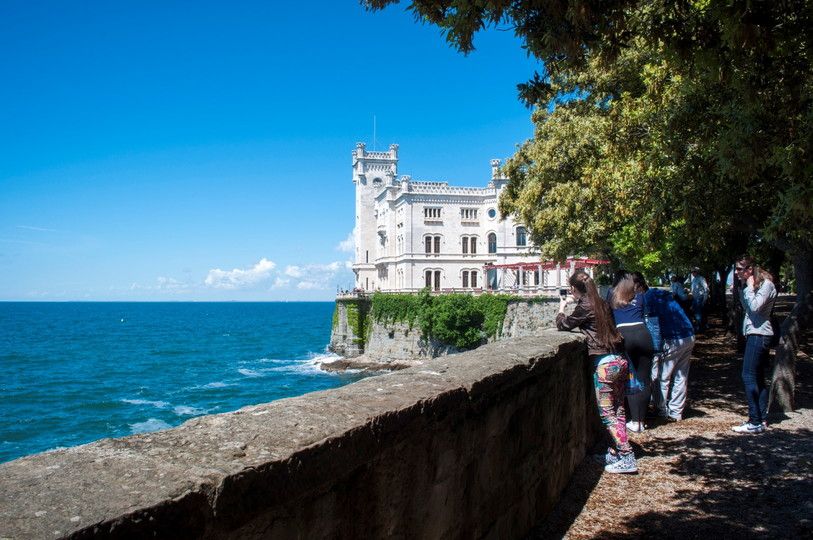 Castello Di Miramare, Friuli Venezia Giulia - Sorge su un promontorio all'interno della riserva naturale di Miramare. Costruito nella seconda metà dell'Ottocento in stile neo-medievale, ha ospitato la residenza estiva degli Asburgo ed è circondato da un rigoglioso parco di 22 ettari. nell'Ottocento fi teatro di una storia romantica e triste che ebbe per protagonisti la bella principessa Carlotta del Belgio e Massimiliano d'Asburgo-Lorena, arciduca d'Austria e poi imperatore del Messico dove morì fucilato dai patrioti di quel Paese.