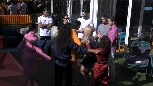 Dayane viene chiamata in giardino e dopo aver letto il messaggio, con lo sguardo rivolto al cielo, ringrazia il pubblico da casa mentre i compagni formano un cerchio con lei e la abbracciano.