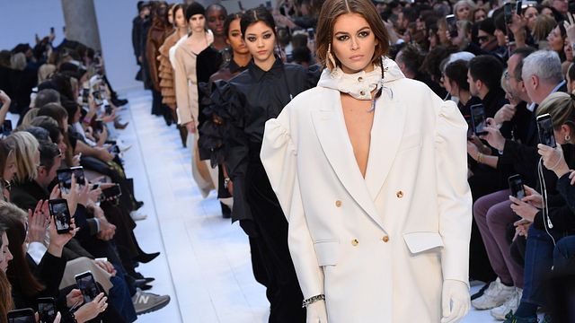 Finale di sfilata Max Mara FW 2020: in primo piano, Kaia Gerber