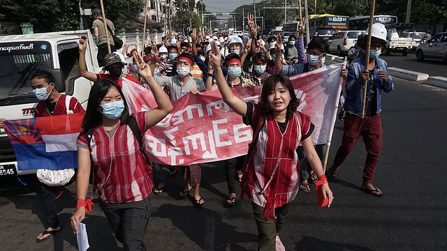 Circa un migliaio di birmani hanno manifestato a Yangon (ex Rangoon) per protestare contro il colpo di Stato che ha rovesciato Aung San Suu Kyi. "Abbasso la dittatura militare", hanno gridato i manifestanti sventolando bandiere rosse con i colori del partito della ex leader, la Lega nazionale per la democrazia (Lnd).