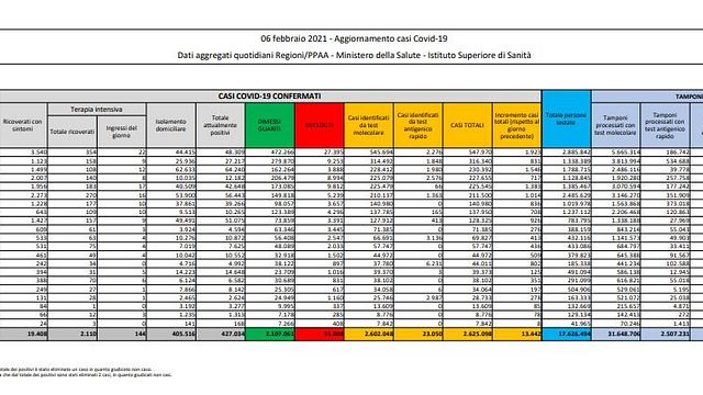 Attualmente positivi - Gli attualmente positivi sono 427.034. Di questi, 405.516 si trovano in isolamento domiciliare, 19.408 sono ricoverati con sintomi, 2.110 si trovano in terapia intensiva.