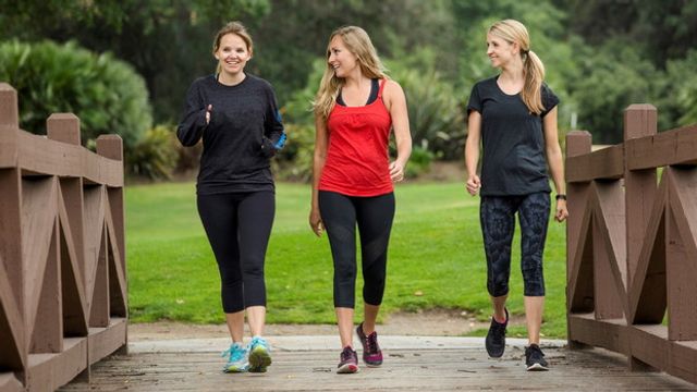 PER BRUCIARE CALORIE – Se il nostro obiettivo però è perdere peso, occorre che ci impegniamo un po’ di più. Per far sì che camminare diventi un fitness brucia grassi, occorre trasformarlo in un allenamento aerobico. Occorre cioè camminare con un ritmo capace di far salire il nostro battito cardiaco e la frequenza respiratorio oltre un certo livello: a quel punto il nostro organismo comincerà a bruciare davvero, intaccando le sue riserve di energia. Anche in questo caso, i braccialetti da fitness che misurano la frequenza cardiaca possono essere molto utili, segnalandoci quando avremmo raggiunto i livelli ottimali per il nostro allenamento. A livello empirico, diciamo che occorre camminare alla velocità che teniamo quando siamo di fretta: dobbiamo arrivare a sentire il cuore che batte più rapidamente e che il respiro diventa più rapido, senza però arrivare all’affanno. Camminiamo a falcate ampie, in posizione eretta, facendo oscillare le braccia e verificando di avere sempre un buon appoggio del piede e che la respirazione sia profonda. In poco tempo dovrebbe aumentare anche la sudorazione e parlare potrebbe essere un po’ più difficoltoso. Per un allenamento efficace in termini brucia grassi occorre raggiungere la velocità minima di 4,5 chilometri orari, ma con un po’ di allenamento si può arrivare facilmente a 6, e mantenere il ritmo per almeno 40-60 minuti senza fermarsi. Ricordiamo sempre di cominciare ad allenarci con gradualità, rallentando il ritmo se ci sentiamo troppo affannati o avvertiamo dolore. Se camminiamo per perdere peso e non solo per rilassarci e per passatempo, occorre allenarsi almeno tre volte a settimana. Naturalmente una camminata sportiva di un’ora ci farà percorrere, se non tutti, almeno una buona quota dei fatidici diecimila passi. Sommandoli a quelli della normale quotidianità, il numero complessivo ci lascerà stupiti.