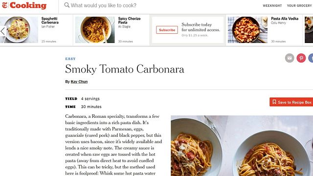 Continua ad essere in agitazione il mondo del web e social dopo la pubblicazione della rivisitazione del New York Times della carbonara, grande classico italiano. Il quotidiano americano propone nelle sue pagine rivolte ai lettori gourmand e dedicate ai suggerimenti di cucina la ricetta "Smoky Tomato Carbonara", ovvero la carbonara di pomodoro affumicato.