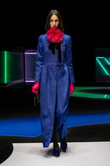 VITA ALTA, TACCHI BASSI - La silhouette femminile è allungata e sottile, con la vita alta. Le lunghezze maxi dei cappotti si alternano al corto degli shorts, indossati sempre sulle calze coprenti. Le giacche corte con coulisse richiamano il mondo dello sport. Tocchi di colore grafico e di velluto punteggiano gli accessori: scarpe dai tacchi bassi, stivali calza, piccole borse a mano.