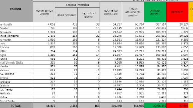I numeri della pandemia Sono 2.216 i pazienti ricoverati in terapia intensiva in Italia, con un aumento di 22 unità rispetto a ieri. Gli ingressi giornalieri in rianimazione sono stati 163. Nei reparti ordinari sono invece ricoverate 18.372 persone, 80 in piu' di ieri. Gli attualmente positivi sono 411.966, con un incremento di 7.302. La Regione con il maggior incremento di casi è ancora una volta la Lombardia che registra 4.191 nuove infezioni, seguita da Emilia-Romagna (+2.542) e Campania (+2.215).