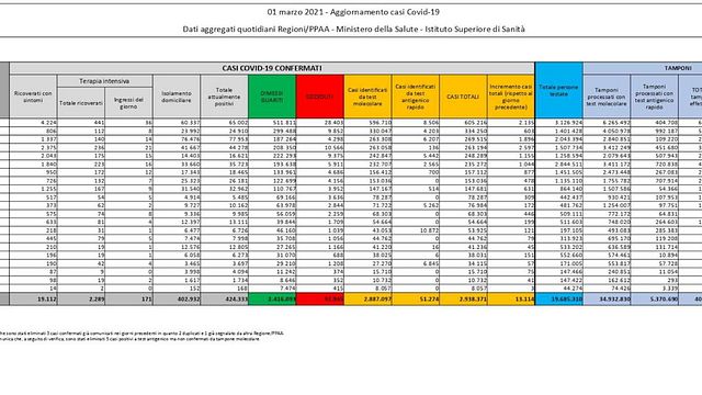Bilancio aggiornato - Sono 13.114 i nuovi casi di coronavirus registrati nel nostro Paese nelle ultime 24 ore, per un totale dall'inizio dell'emergenza che arriva 2.938.371. Le vittime sono invece 246, in aumento rispetto alle 192 di domenica, che portano il numero complessivo, da inizio pandemia, a 97.945.