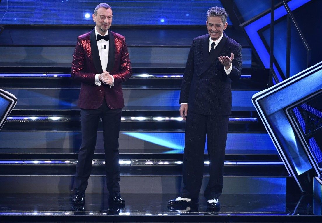 Francesca Michielin e Fedez - Lei al piano e lui in piedi partono per un medley che vede "Dal verde" di Calcutta scivolare in una versione swingata de "Le cose in comune" di Silvestri. Poi parte la sarabanda sanremese: divertente "Felicità" cantata imbronciati, sorprendenti gli incroci con "Fiumi di parole" e "Non amarmi". Meglio l'idea dell'esecuzione 6+