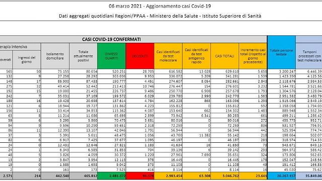 Ad oggi nel nostro Paese, sempre secondo i dati del ministero della Salute, ci sono 465.812 attualmente positivi, in aumento di 9.342 rispetto alla giornata di ieri. I guariti e i dimessi dall'inizio dell'emergenza sono invece 2.481.372, con un incremento di 13.984 nelle ultime 24 ore.