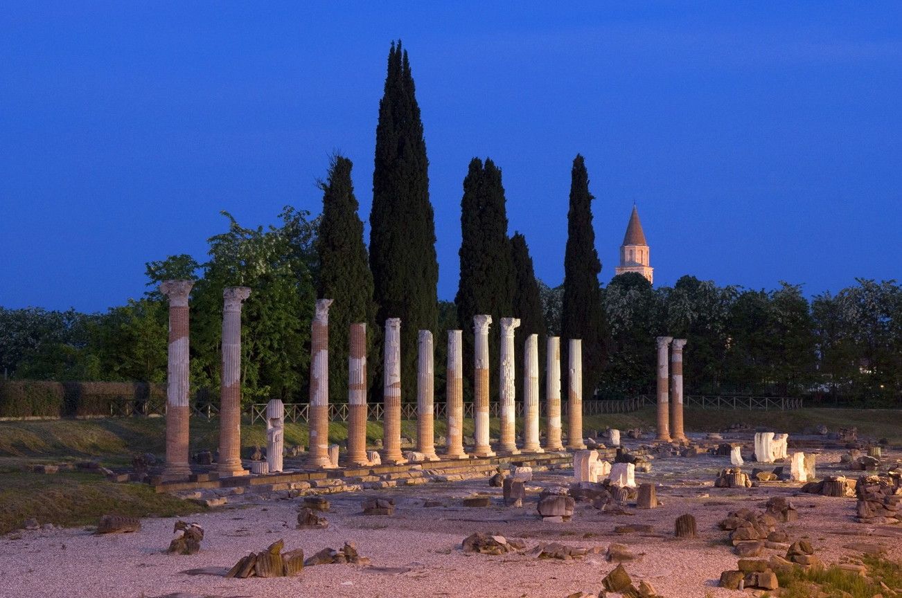 Cuore della zona archeologica sono il Foro, la Via Sacra costeggiata dal porto fluviale e scandita da cipressi centenari, il Circo, l’Anfiteatro e, sulla Via Annia, il Sepolcreto, illuminato anche di notte. Gli ultimi scavi archeologici hanno consentito di offrire ai turisti la Domus di Tito Macro, fra le più vaste dimore di epoca romana rinvenute nel Nord Italia, che copre una superficie di 1.700 metri quadrati e rappresenta un unicum in Europa.